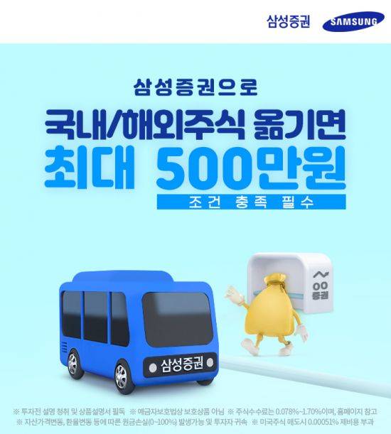 삼성증권, 국내외주식 옮기면 최대 500만 현금 쏜다