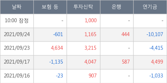 10시 00분 잠정집계에 따르면, 하이브는 외국인과 기관이 각각 2,186주, 1,000주를 순매수 중이다. 기관 중에 투자신탁의 자금이 유입되었다.