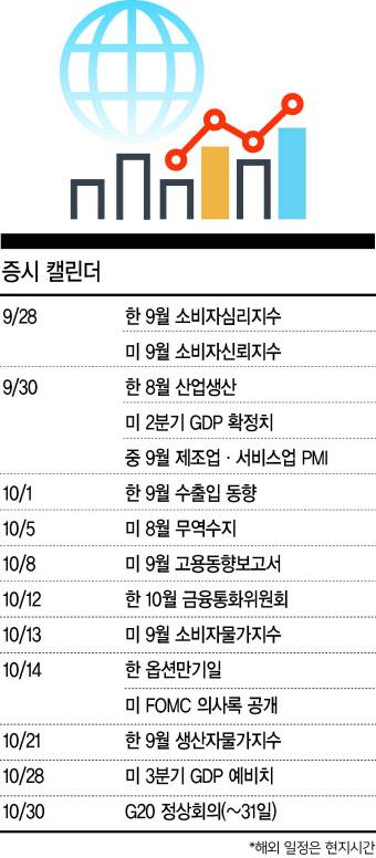 28일엔 한국의 9월 소비자심리지수와 미국의 9월 소비자신뢰지수가 발표된다.