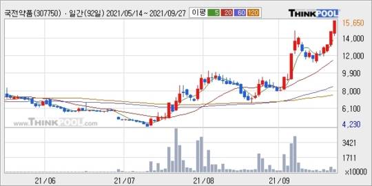 의약품 원료 제조 및 판매업체인 국전약품(307750)이 오후에 들어서 강세를 보이고 있다.