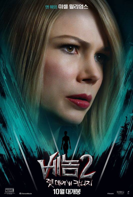 '베놈2: 렛 데어 비 카니지' 톰 하디→미셸 윌리엄스, 캐릭터 포스터 공개