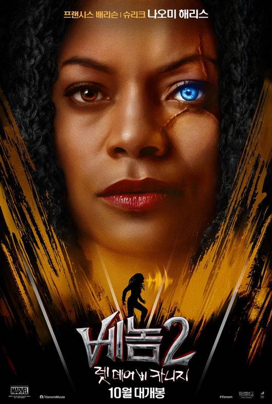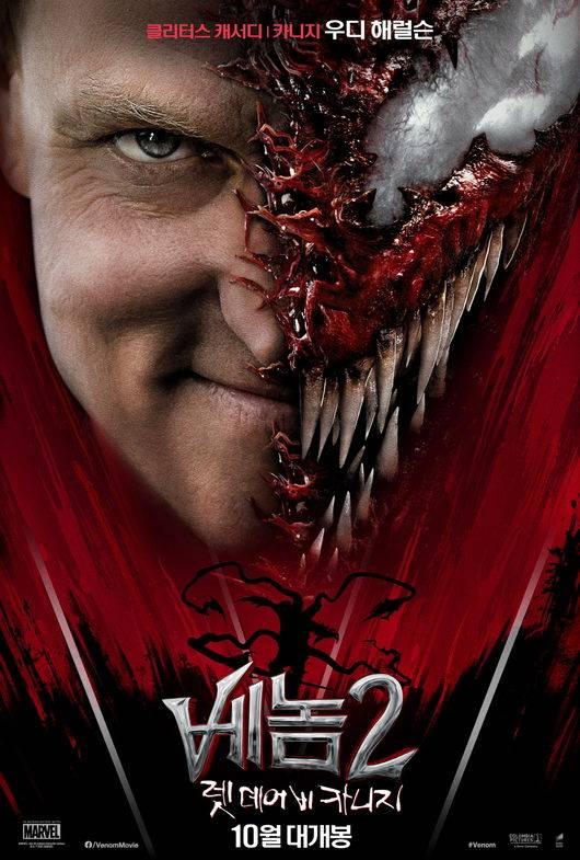특히 두 캐릭터의 얼굴 절반을 덮은 베놈과 카니지의 모습은 빌런 히어로와 사상 최악의 빌런의 강렬한 비주얼과 액션 대결을 더욱 궁금하게 만든다.