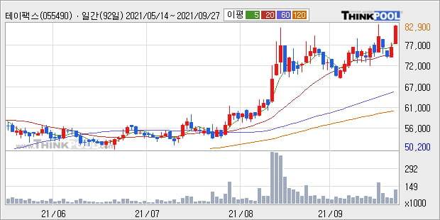 '테이팩스' 52주 신고가 경신, 단기·중기 이평선 정배열로 상승세