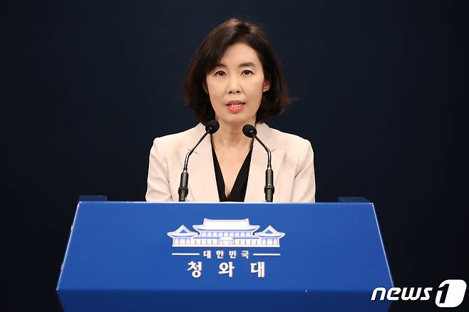 (서울=뉴스1) 이광호 기자 = 박경미 청와대 대변인이 27일 오후 청와대 춘추관에서 문재인 대통령과 김부겸 국무총리 주례회동 관련 브리핑을 하고 있다. 2021.9.27/뉴스1