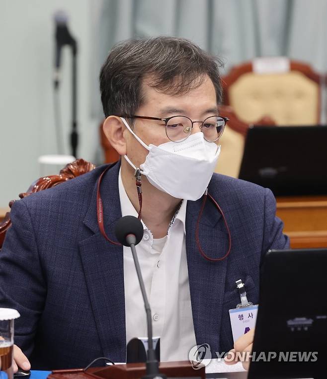 (서울=연합뉴스) 최재구 기자 = 강문성 한국국제통상학회장이 27일 청와대에서 열린 수석·보좌관 회의에 참석해 있다.2021.9.27
