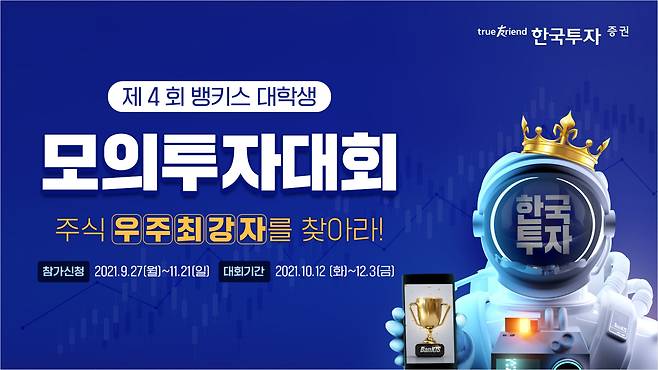 한국투자증권은 건전한 투자문화 정착을 위해 대학생 및 대학원생을 대상으로 '제4회 뱅키스 대학생 모의투자대회'를 개최한다고 27일 밝혔다.