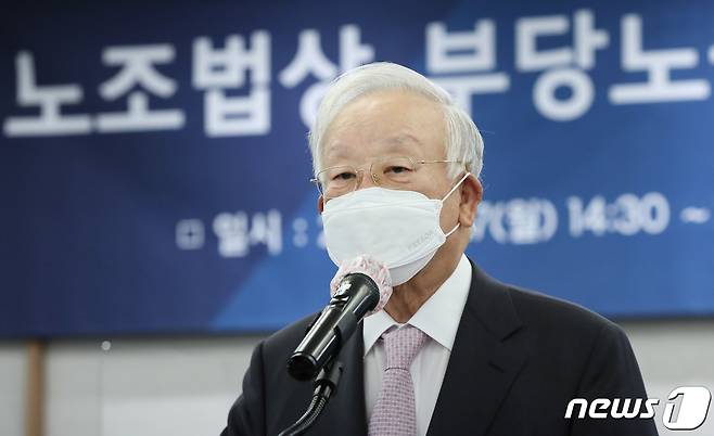 (서울=뉴스1) 박정호 기자 = 손경식 한국경영자총협회(이하 경총) 회장이 27일 오후 서울 중구 세종대로 한국프레스센터에서 열린 노조법상 부당노동행위제도의 문제점과 개선 방안 토론회에서 개회사를 하고 있다. 2021.9.27/뉴스1