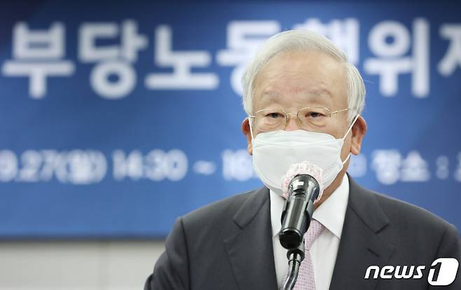(서울=뉴스1) 박정호 기자 = 손경식 한국경영자총협회(이하 경총) 회장이 27일 오후 서울 중구 세종대로 한국프레스센터에서 열린 노조법상 부당노동행위제도의 문제점과 개선 방안 토론회에서 개회사를 하고 있다. 2021.9.27/뉴스1