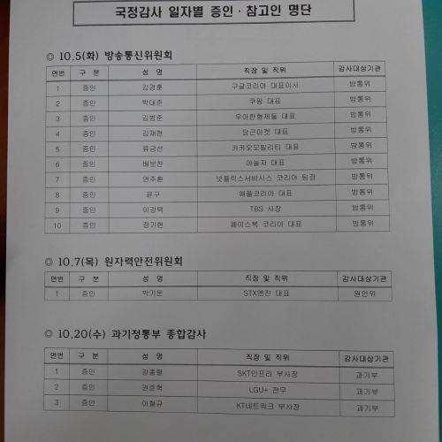 10월 20일 과기정통부 때는 강종렬 SK텔레콤 인프라 부사장, 이철규 KT네트워크 부사장, 권준혁 LG유플러스 전무가 증인으로 참석한다. 박정호 SK텔레콤 대표, 구현모 KT 대표, 황현식 LG유플러스 대표 등 3사 대표도 증인 출석을 피하게 됐다.