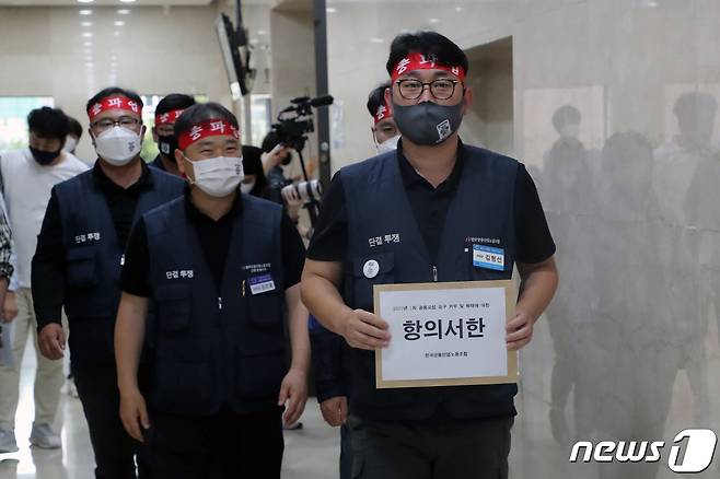 이날 금융노조는 공동교섭에 불참한 사측에게 교섭을 촉구하는 항의서한을 전달했다. 2021.9.27/뉴스1