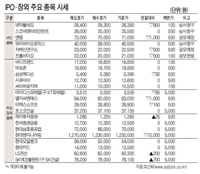 - [표]IPO장외 주요 종목 시세(9월 23일)