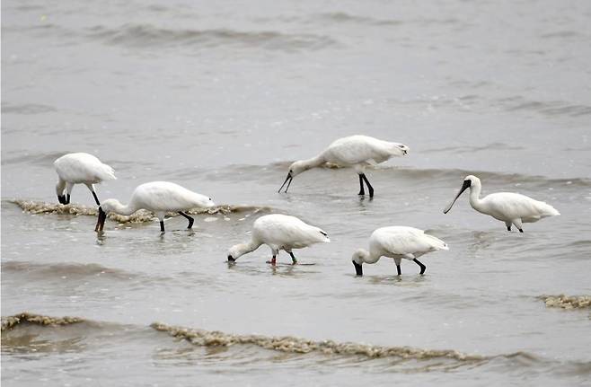 신안 압해도 갯벌서 국제 멸종위기종 저어새 5개체 확인
