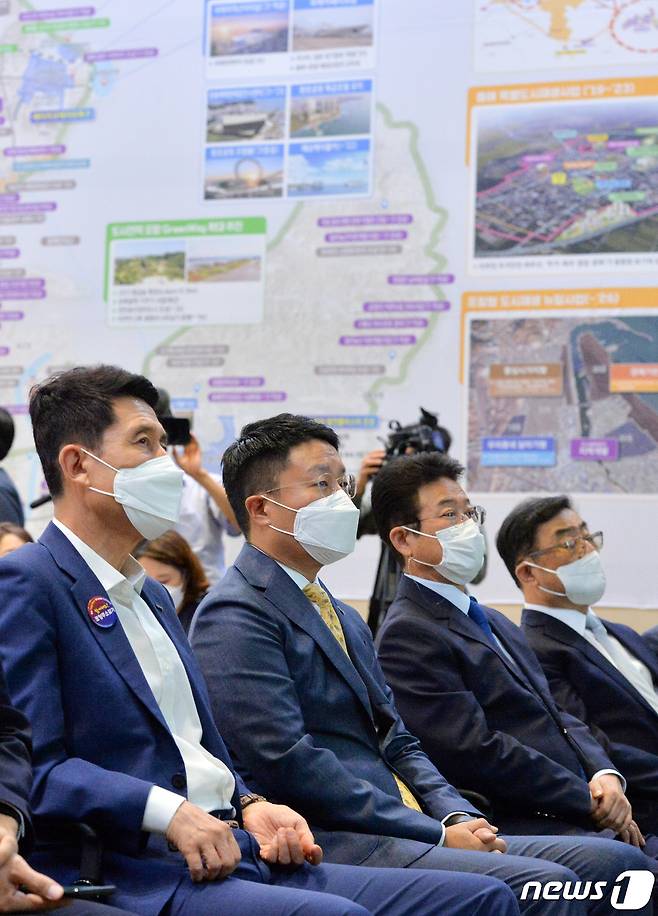 (포항=뉴스1) 최창호 기자 = 윤구 애플코리아 사장이 27일 경북 포항시청 대회의실에서 열린 애플코리아, 경북도, 포항시 포스텍 간 애플제조업 R&D지원센터 및 개발자 아카데미 양해각서 체결식에서 지원센터에 대한 설명을 듣고 있다. 지원센터는 국내 제조업에 특화해 운영할 예정이며, SW 핵심 인력들을 양성하는 개발자 아카데미는 국내에서 처음으로 설립하게 된다.한국 내 설립 장소로 포스텍이 선정된 것은 정보통신기술( ICT) 관련 교육 인프라가 잘 갖췄고, 지역의 경제 활성화, 일자리 창출 등을 감안한 결과로 알려졌다. 왼쪽부터 이강덕 포항시장, 윤 구 애플코리아 시장, 이철우 경북지사, 김무환 경북도지사. 2021.9.27/뉴스1