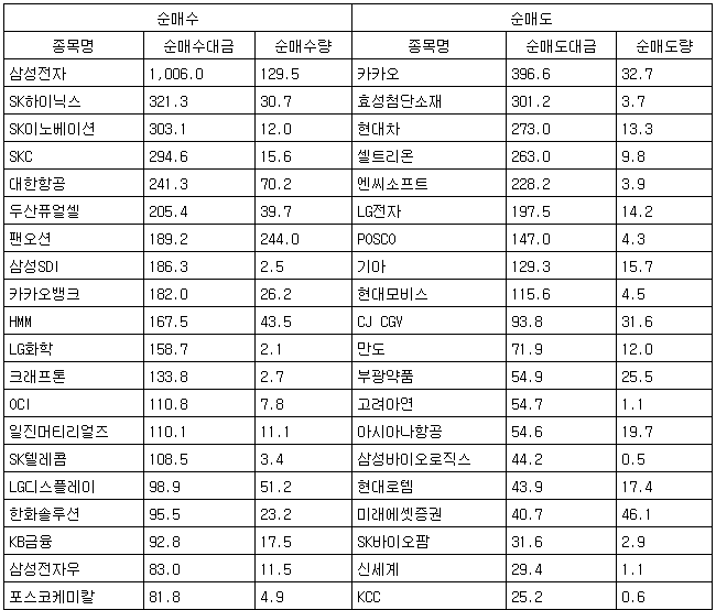 [표] 거래소 외국인 순매수도 상위종목(27일)