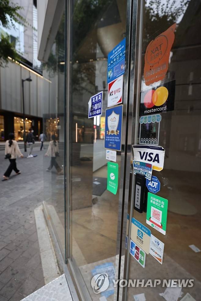 사진은 27일 오후 서울 중구 명동에 폐업한 한 가게에 붙어있는 신용카드 등 안내 표시.