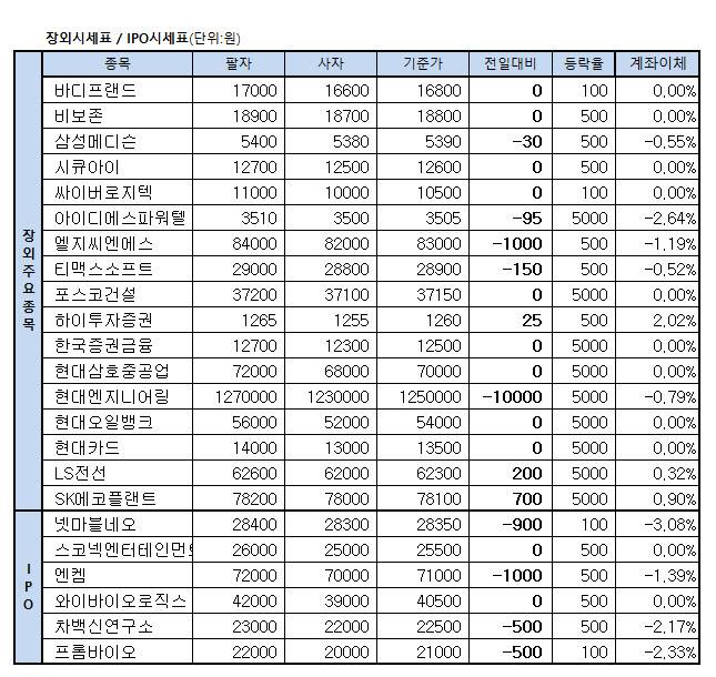 [표]장외주식 거래현황(9/27)