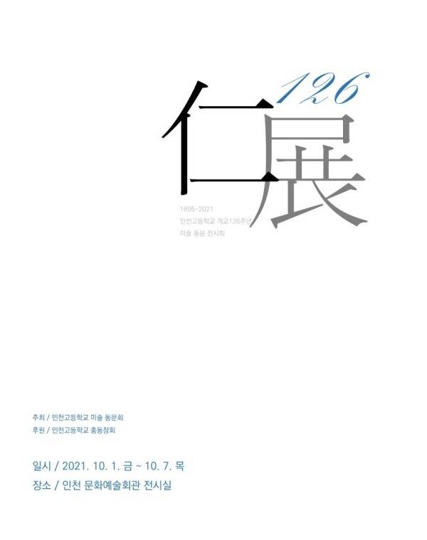 인천고등학교 미술 동문회 동문전인 '인전(仁展) 126' 전시회가 10월 1일(금)부터 7일(목)까지 인천문화예술회관 중·소 전시실에서 개최된다.