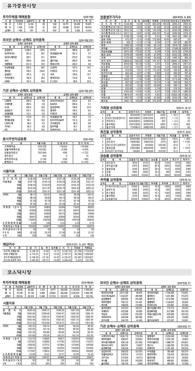 [표] 주요 증시 지표 (9월 27일)