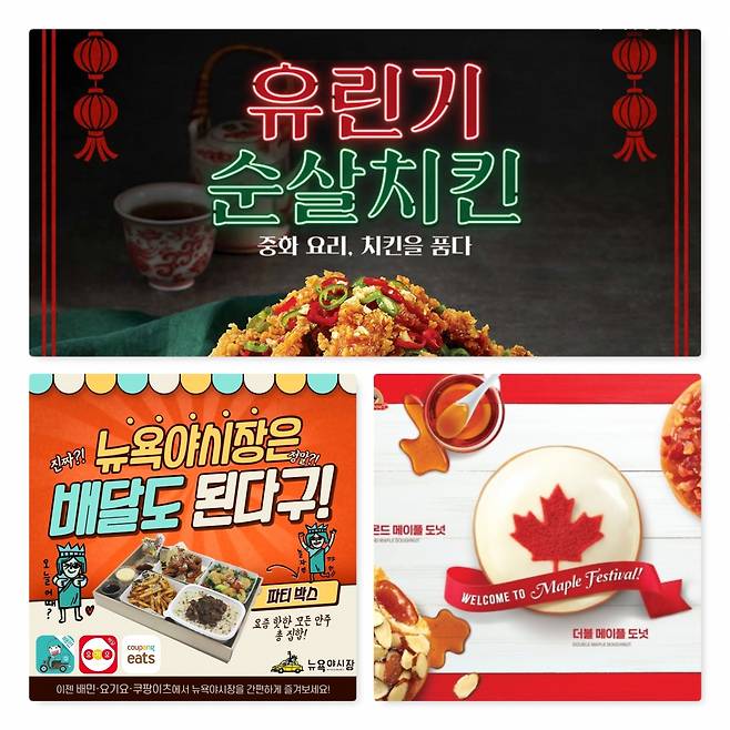 신메뉴 3종은 도넛 겉면에 메이플 시럽을 입히고 구운 베이컨 칩을 토핑한 ‘베이컨 메이플 링’, 도넛 안에 메이플 시럽을 가득 넣고 아몬드를 올린 ‘아몬드 메이플 도넛’, 단풍나무잎 모양을 토핑한 ‘더블 메이플 도넛’ 등이다. 커피나 우유와 함께 먹으면 메이플 시럽의 풍미가 더욱 잘 느껴진다.