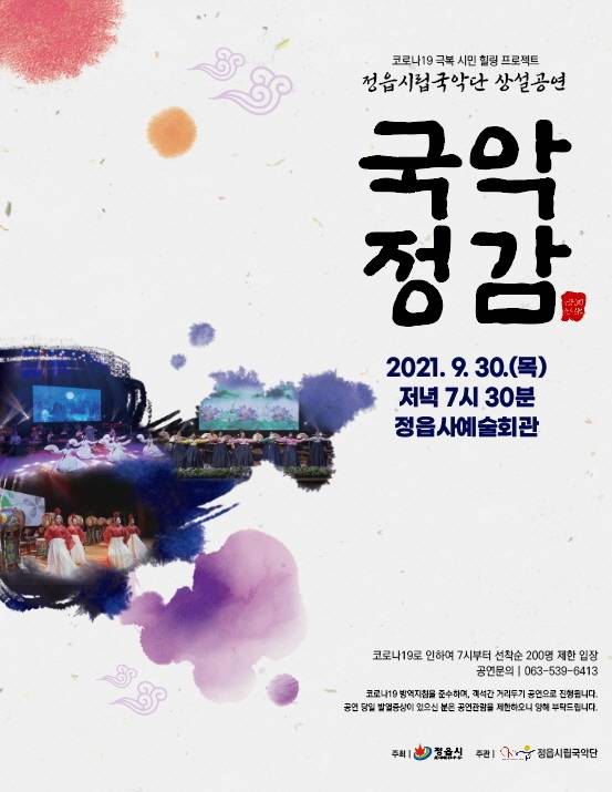 전북 정읍시립국악단이 코로나19로 지친 시민들을 위로하고, 일상으로의 복귀를 응원하는 코로나19 극복 시민 힐링 프로젝트 '국악 정감' 공연을 선보인다.