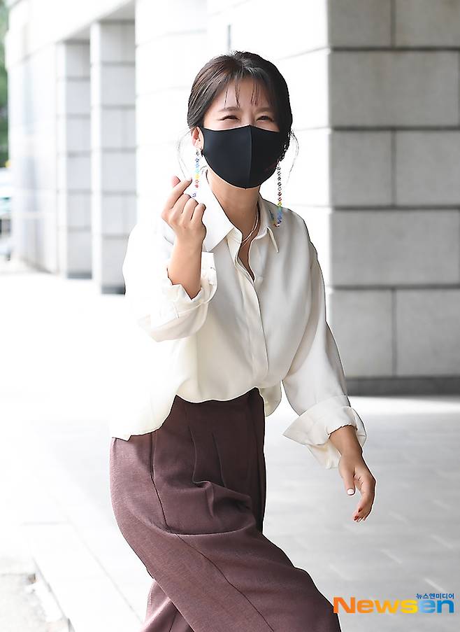가수 풍금이 9월 27일 오후 방송 녹화 일정을 위해 서울 영등포구 여의도동 KBS 별관으로 향하고 있다.