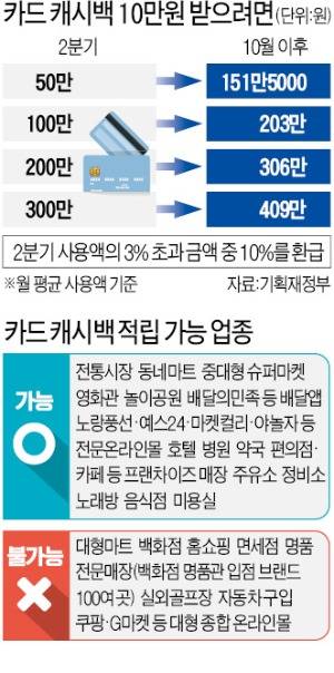 10월부터 카드 캐시백..배민·스타벅스 되고 쿠팡·백화점 안된다