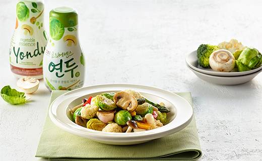 100% 순 식물성 콩 발효 에센스 연두는 콩 발효 액에 표고버섯, 마늘, 양배추 등 8가지 야채 우린 물로 만들어, 다른 양념이나 부 재료 없이 연두 하나 만으로 맛있는 요리를 완성할 수 있다고 한다.