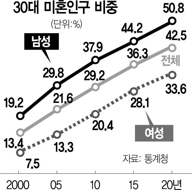 "결혼 안 하나" "결혼 못하나"..30대 男 절반이 미혼