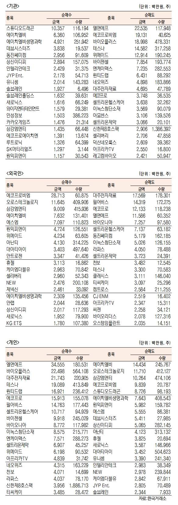 - [표]주간 코스닥 기관·외국인·개인 순매수·도 상위종목(9월 23~24일)