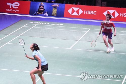 epa09491029 Chen Yu Fei of China (R) in action against Aditi Bhatt of India during the Women's Singles match of the 2021 Sudirman Cup match between China and India in Vantaa, Finland, 27 September 2021. EPA/KIMMO BRANDT