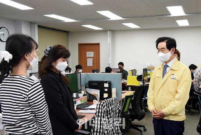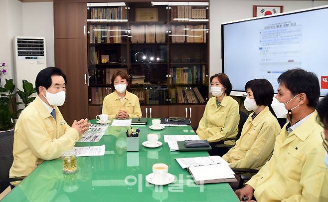 [의정부=이데일리 정재훈 기자] 안병용 의정부시장이 27일 의정부시보건소를 찾아 추석 연휴 이후 코로나19 확진자 급증에 따른 신속한 대응을 당부했다.