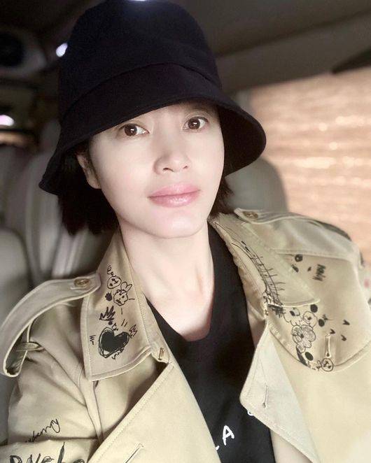 공개된 사진 속에는 베이지색 트렌치 코트를 입고 검정색 모자를 쓴 김혜수가 차 안에서 셀카를 찍고 있는 모습이 담겨 있다.