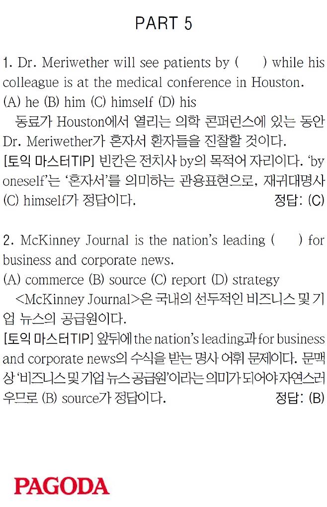 [파고다 강남 스타토익 RC유나신] PART 5