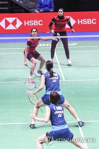 epa09491360 Nami Matsuyama and Chiharu Shida of Japan (front) in action against Nour Ahmed Youssuri and Doha Hany of Egypt during the Woman´s Doubles match of the 2021 Sudirman Cup tie Japan vs Egypt in Vantaa, Finland, 27 September 2021. EPA/KIMMO BRANDT