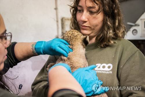 epa09491425 Veterinarians look after four lion cubs, in Copenhagen zoological garden in Copenhagen, Denmark, 27 September 2021. The four lion cubs, two of whom are females, are all healthy. Two of the cubs were born outdoor and had to be warmed using a hair dryer. Lion cubs must stay with their mother for two years. EPA/Ida Marie Odgaard DENMARK OUT