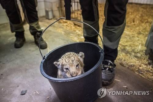 epa09491402 Veterinarians look after four lion cubs, in Copenhagen zoological garden in Copenhagen, Denmark, 27 September 2021. The four lion cubs, two of whom are females, are all healthy. Two of the cubs were born outdoor and had to be warmed using a hair dryer. Lion cubs must stay with their mother for two years. EPA/Ida Marie Odgaard DENMARK OUT