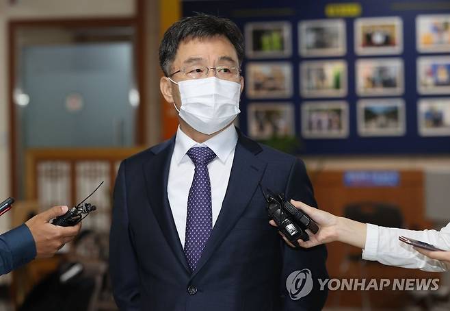 (서울=연합뉴스) 김인철 기자 = 경기 성남시 대장동 개발사업에서 특혜를 받은 의혹이 제기된 화천대유자산관리(화천대유)의 최대 주주 김만배 씨가 27일 오후 참고인 신분으로 조사를 마치고 서울 용산경찰서를 나서며 취재진 질문에 답하고 있다. 2021.9.27