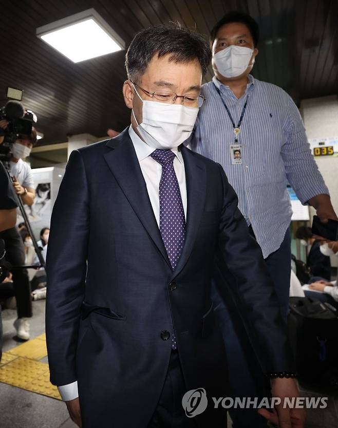 (서울=연합뉴스) 김인철 기자 = 경기 성남시 대장동 개발사업에서 특혜를 받은 의혹이 제기된 화천대유자산관리(화천대유)의 최대 주주 김만배 씨가 27일 오후 참고인 신분으로 조사를 마치고 서울 용산경찰서를 나서고 있다. 2021.9.27