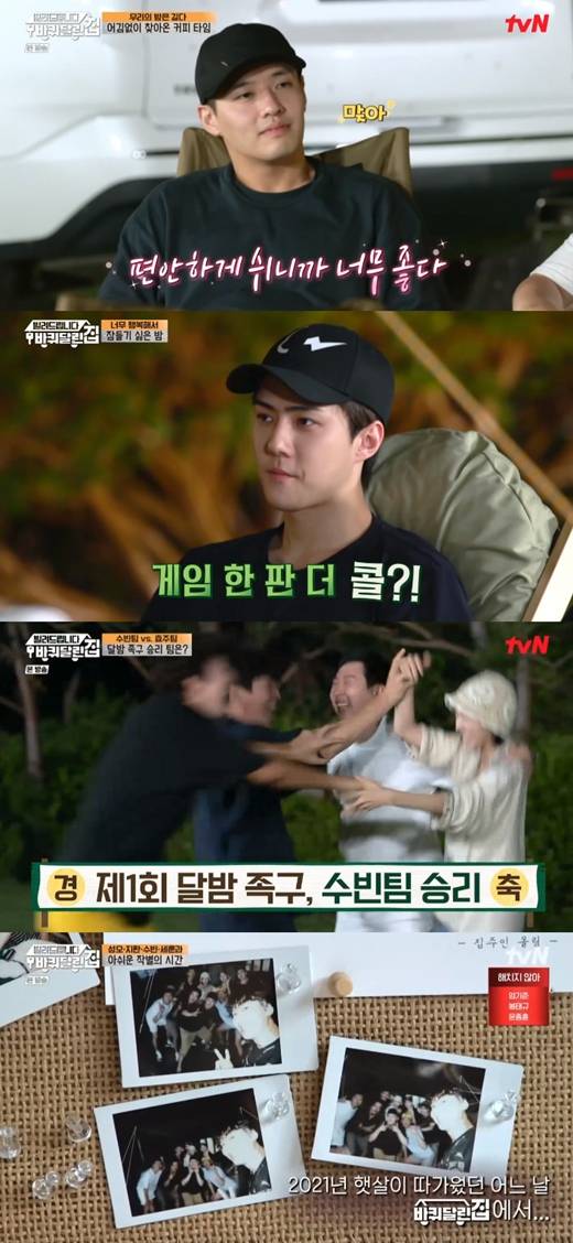 오순도순 모인 멤버들은 마지막 밤에 아쉬움을 표했다. 그러자 세훈은 "게임 한 판 더 하느냐"라고 의욕을 드러냈다. 박지환 역시 "마지막 족구로 불태워볼까"라고 거들었다.