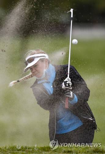 epa09491585 Blind golfer Charlene Pienaar of South Africa hits out the bunker during the Cape Town Disabled Golf Open on the King David Mowbray Golf course in Cape Town, South Africa, 27 September 2021. Postponed for two years due to covid-19 the Cape Town Disabled Golf Open is one of the top disabled golf tournaments in the world. People suffering from any kind of physical disabilities including arm and leg amputees, hemiplegics, paraplegics, stroke victims, blind, and deaf people that are able to grip the club with at least one hand and hit the ball can compete. EPA/NIC BOTHMA