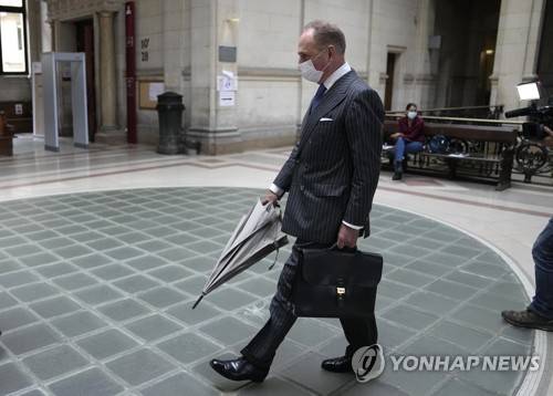 UBS General Counsel Markus Diethelm leaves the courtroom after the French court postponed the verdict of UBS tax evasion at Paris' Appeals court, Monday, Sept. 27, 2021. Swiss bank UBS will have to wait until December 13 to see if its appeal against a French €4.5 billion (5.27 billion US dollars) tax evasion penalty is successful. (AP Photo/Michel Euler)
