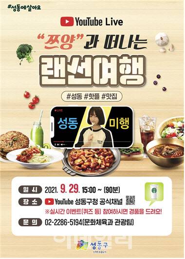 쯔양과 실시간 채팅으로 소통할 수 있고 퀴즈 이벤트로 경품도 받을 수 있는 라이브 방송은 유튜브 성동구청 공식채널을 통해 누구나 참여할 수 있다.