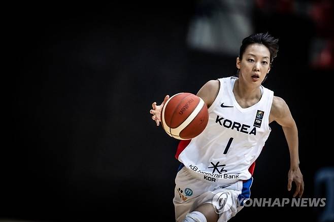 (서울=연합뉴스) 27일(한국시간) 요르단 암만에서 열린 2021 국제농구연맹(FIBA) 여자 아시아컵 한국과 뉴질랜드의 경기에서 신지현이 드리블을 하고 있다. 정선민 감독이 이끄는 한국은 이날 경기에서 85-69로 승리했다. 2021.9.27 [FIBA 홈페이지 캡처. 재판매 및 DB 금지]