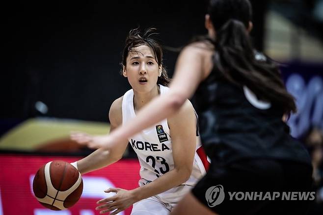 (서울=연합뉴스) 27일(한국시간) 요르단 암만에서 열린 2021 국제농구연맹(FIBA) 여자 아시아컵 한국과 뉴질랜드의 경기에서 김단비가 드리블을 하고 있다. 정선민 감독이 이끄는 한국은 이날 경기에서 85-69로 승리했다. 2021.9.27 [FIBA 홈페이지 캡처. 재판매 및 DB 금지]