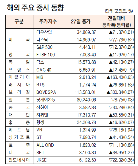 - [표]주간 해외 주요 증시 동향(9월 23~24일)