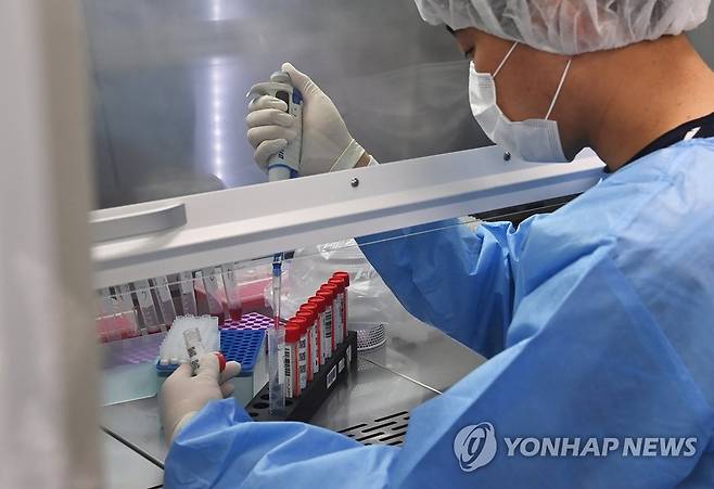 (서울=연합뉴스) 28일 오전 서울 종로구 동성고등학교에 마련된 '학교 신속 PCR검사 시범사업 운영소'에서 의료진이 학생들에게 채취한 검체를 검사소 바로 옆에 위치한 이동형 검사실로 옮겨 코로나19 감염 여부를 확인하고 있다. 2021.9.28 [사진공동취재단]