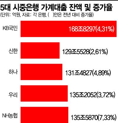 턱밑까지 찬 5대銀 가계대출..3兆도 안남은 돈 줄