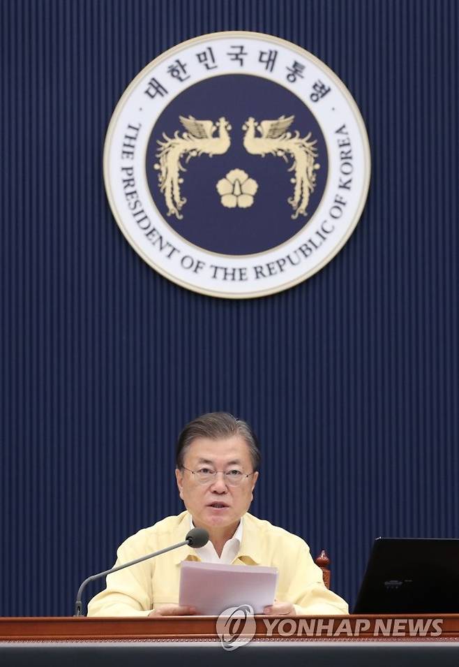 (서울=연합뉴스) 최재구 기자 = 문재인 대통령이 28일 오전 청와대 여민관 영상회의실에서 열린 국무회의에서 발언하고 있다. 2021.9.28