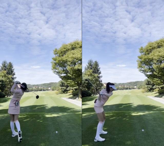 배우 박연수의 딸 송지아의 남다른 골프 스윙을 선보였다.