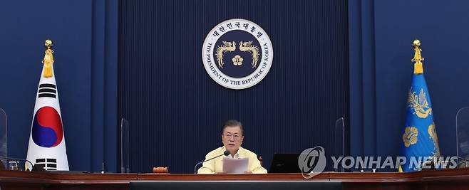 (서울=연합뉴스) 최재구 기자 = 문재인 대통령이 28일 오전 청와대 여민관 영상회의실에서 열린 국무회의에서 발언하고 있다. 2021.9.28